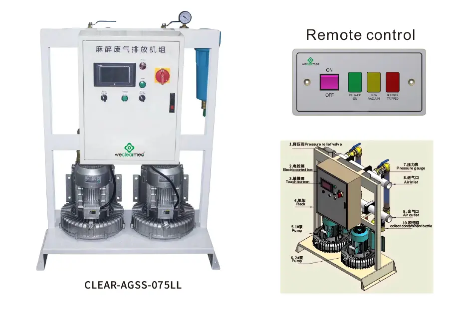 1.Визуелни резервоар за издувне гасове, сепаратор за уље, систем за испирање издувних гасова