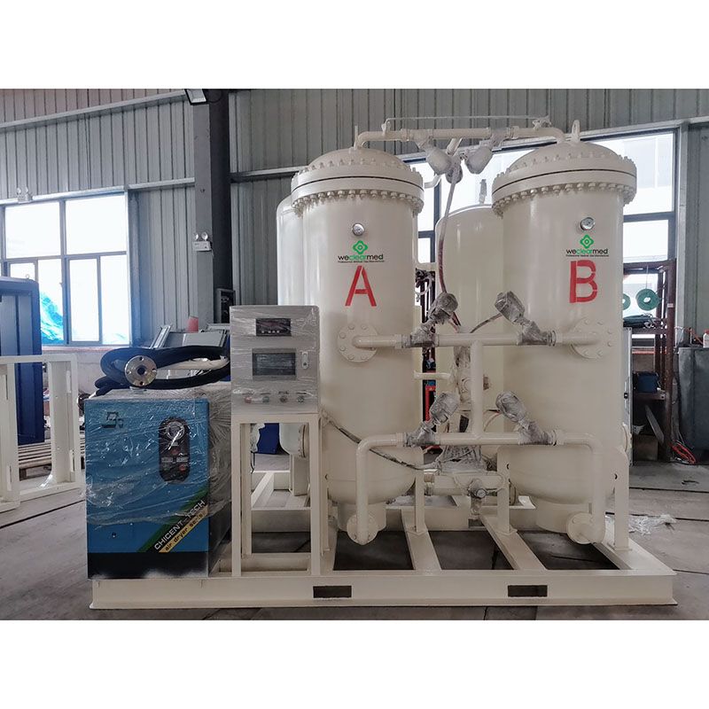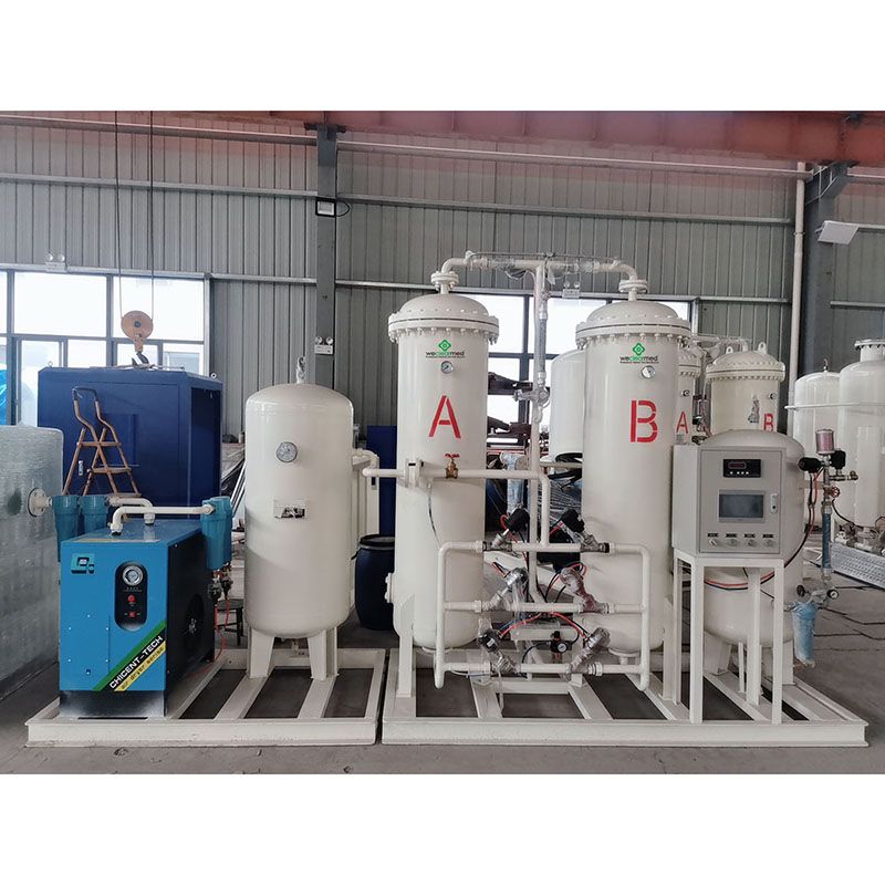 Ваздух прво иде у ваздушни компресор, затим кроз расхлађени ваздушни сушач да се осуши и пречисти. Затим под нормалном температуром ниског притиска, користећи селективност молекуларног сита зеолита за адсорпцију кисеоника. Гас кисеоника се скупља на врху адсорпционог торња, а затим улази у резервоар за складиштење кисеоника. Прашина, бактерије и необичан мирис се уклањају различитим филтерима да би се постигао кисеоник високог квалитета. Чистоћа је 93%±3%.